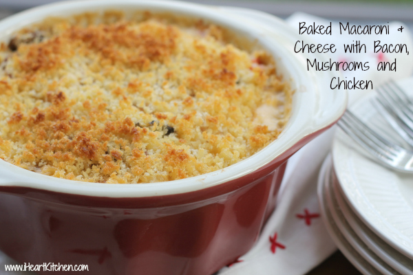 Baked Macaroni & Cheese with Bacon, Mushrooms and Chicken