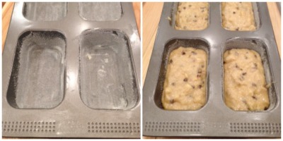 Also - mini chocolate chips work best in this recipe as the larger ones tend to sink to the bottom of the batter.