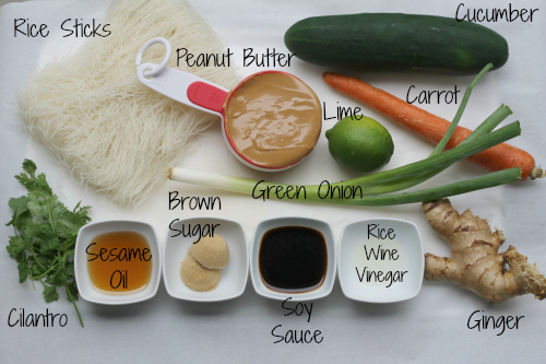 - 1 package rice sticks, prepared according to package instructions (soak in hot water to soften - no cooking necessary)