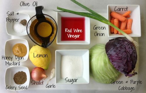 Now, this is not your standard cafeteria style coleslaw…you know the creamy kind that is dripping in mayo. My version is an Oil & Vinegar Coleslaw that is sweet and tangy with great crunch. I am not a fan of mayo so I experimented for a while until I found the perfect combination of ingredients. Even my husband who would eat mayo sandwiches can’t get enough of this slaw.